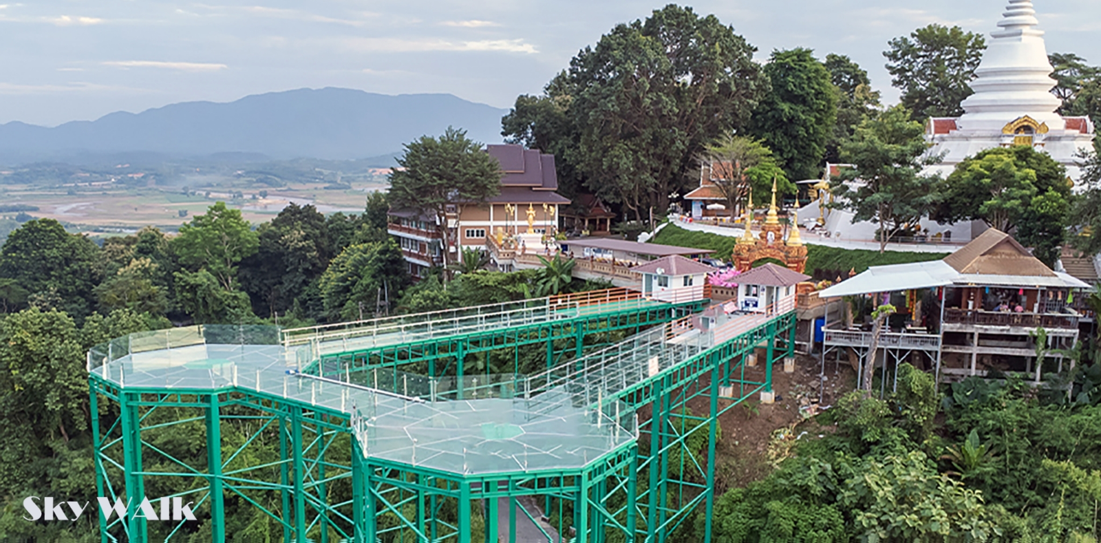 【清萊天空步道】全國最新一座天空步道本周在最北府治清萊正式啟用。參觀亮點之一,就是登上步道後能同時飽覽泰、緬、寮,這是清萊的最新景點,位置與金三角距離不遠。傳統古老寺廟因在山丘上,俯瞰著整個湄公河與寮國,而建出極具現代感的空中步道,延伸出來讓景色看得更廣更清楚,還可以渺瞰旁邊的清盛古城甚至是金三角。【金三角坐船遊湄公河】順路探訪清盛古城,後繼前往泰、緬、寮三國領土相銜接的地方,以(湄公、美塞)兩河的交匯,成為自然國界。您將於此處搭乘長尾船遊覽湄公河,觀看兩岸人民生活情形。