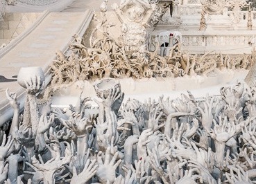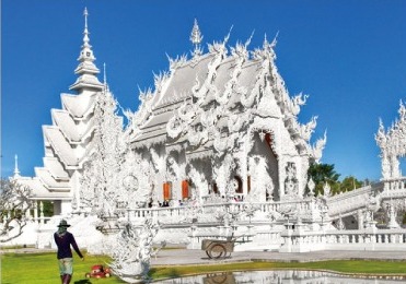 【清邁】是泰國第二大城市,是蘭娜王朝的古都, 於1296年建都,市內風景秀麗,遍植花草,氣候涼爽,是著名的避暑勝地。有“北國玫瑰”的雅稱現仍保留大量的文化遺跡,是蘭娜藝術及建築的集中地。【龍坤藝術廟(白廟)】由泰國名藝術家–查仁猜師父,花五年多時間所建"泰國風格"的龍坤藝術廟,廟的藝術精品全都是查仁猜師父及其徒弟們所創造出來的;廟堂外觀裝飾鏡子碎片,山形窗則裝飾著Nagas(多頭蛇和幽冥世界之神祗 )、大象及傘等形狀。此廟結合傳統與現代創作的藝術塊寶,展現泰國國寶級藝術家的創意,也是此地的新地標。