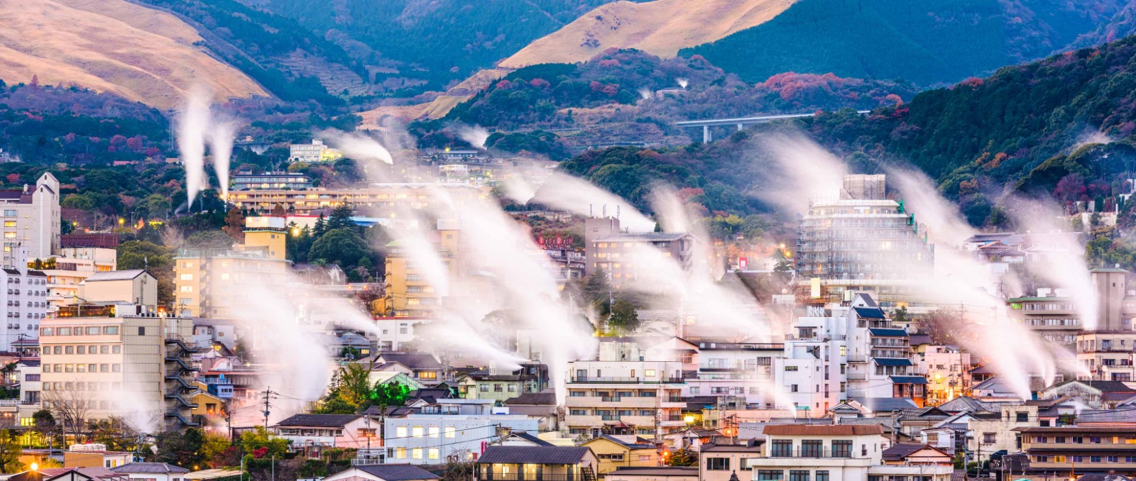 湯布院是分佈在大分川的源流之地---由布院盆地中心的鄉鎮,盆地北側有知名的稱爲豐後富士的由布嶽。自古以來,老式旅店與別致的洋式私人旅館、有個性的美術館與小型展覽室、高級酒樓與茶室相處並存,構成一種優雅的氣氛。