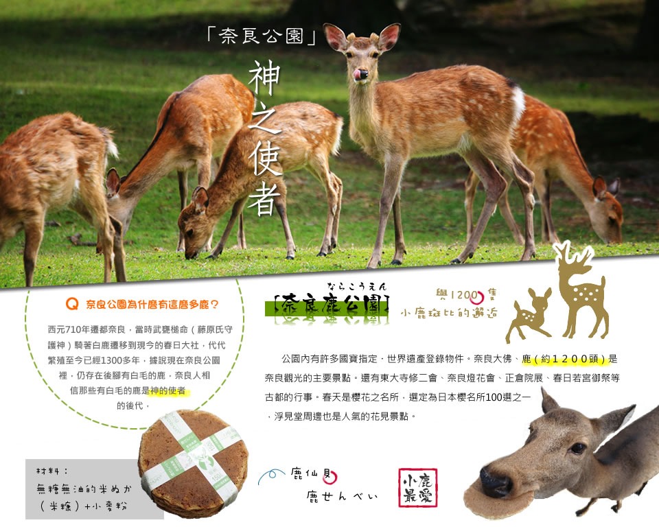 【奈良公園】奈良公園除了大片綠地之外,最有名的象徵物是成群的鹿有1200頭。傳說中,春日大社的神祗,就是乘著鹿降臨此地的。