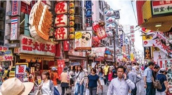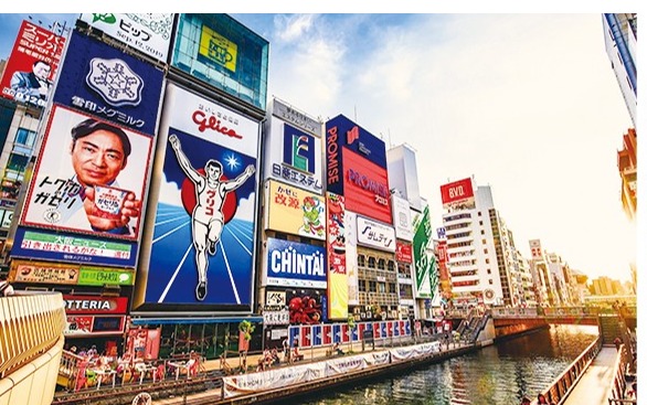【道頓堀】大阪是遊客和狂歡者的天堂。在道頓堀,高聳的霓虹燈招牌、會所、酒吧以及供應當地特色美食的餐廳比比皆是。在這裡可以體驗到刺激而又不容錯過的大阪夜生活。道頓堀霓虹閃爍的建築牆面高高聳立,這證明了在霓虹燈作為一項極具前景的全新技術而佔據主導地位的時代,日本人所擁有的樂觀開朗的精神。整個地區都流露出這種濃郁的復古未來主義風格,對於想要領略典型的日本大都市氛圍的遊客,這裡可謂是不二之選。